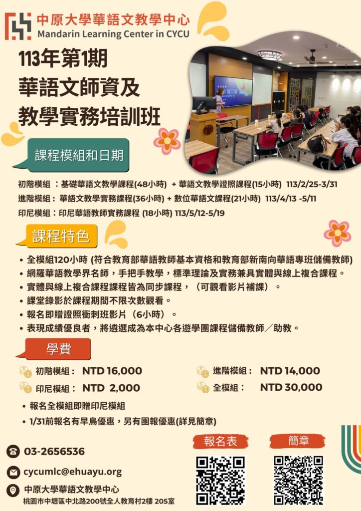 – 網羅華語教學界名師,手把手教學,理論及實務兼具實體與線上複合課程