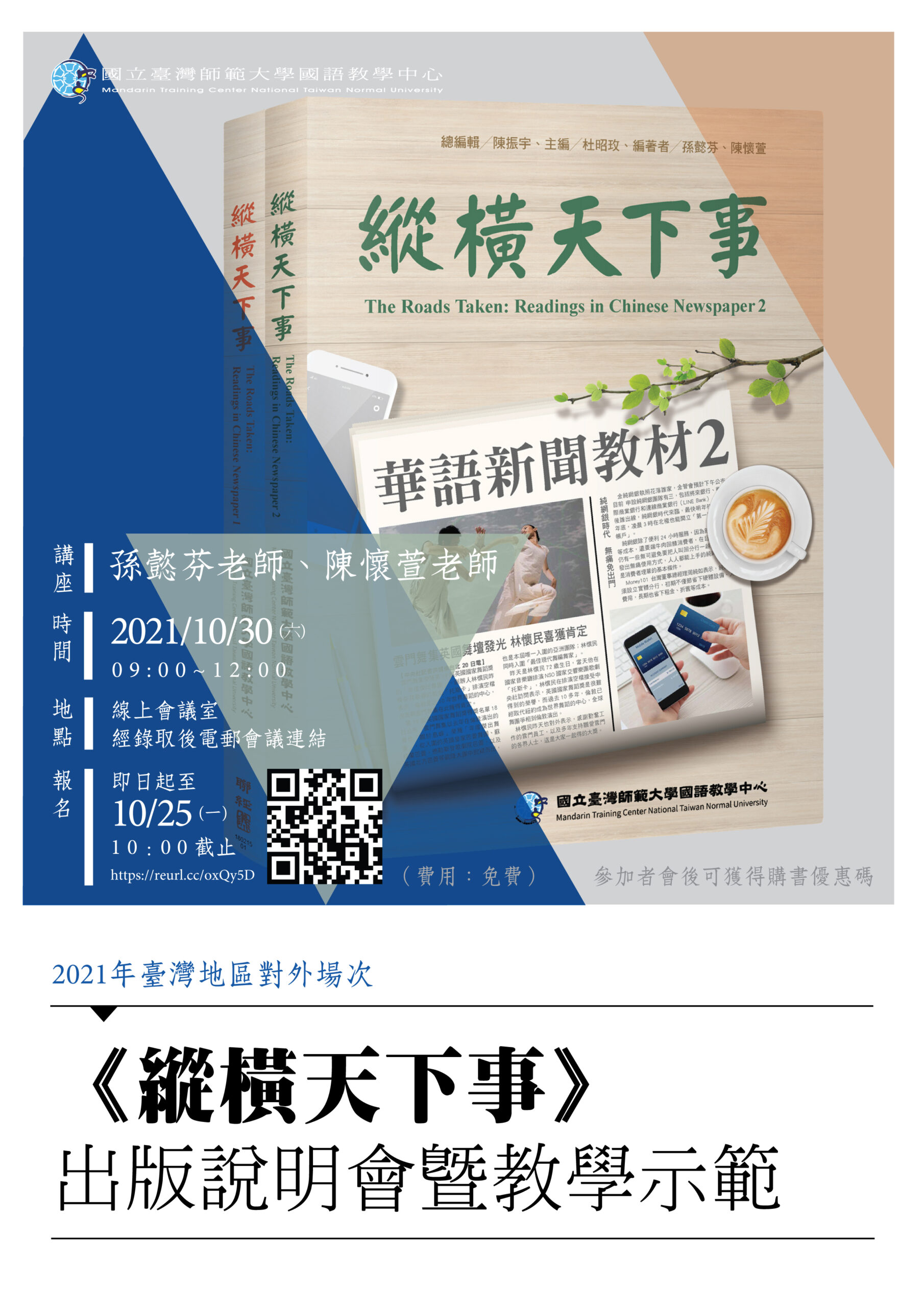 國立臺灣師範大學國語教學中心(以下簡稱本中心)新編的新聞讀報教材《縱橫天下事》共有兩冊,經過本中心幾學季的試教並根據回饋意見調整後,第一冊已於今年五月底正式出版,第二冊亦已於八月底完成出版。