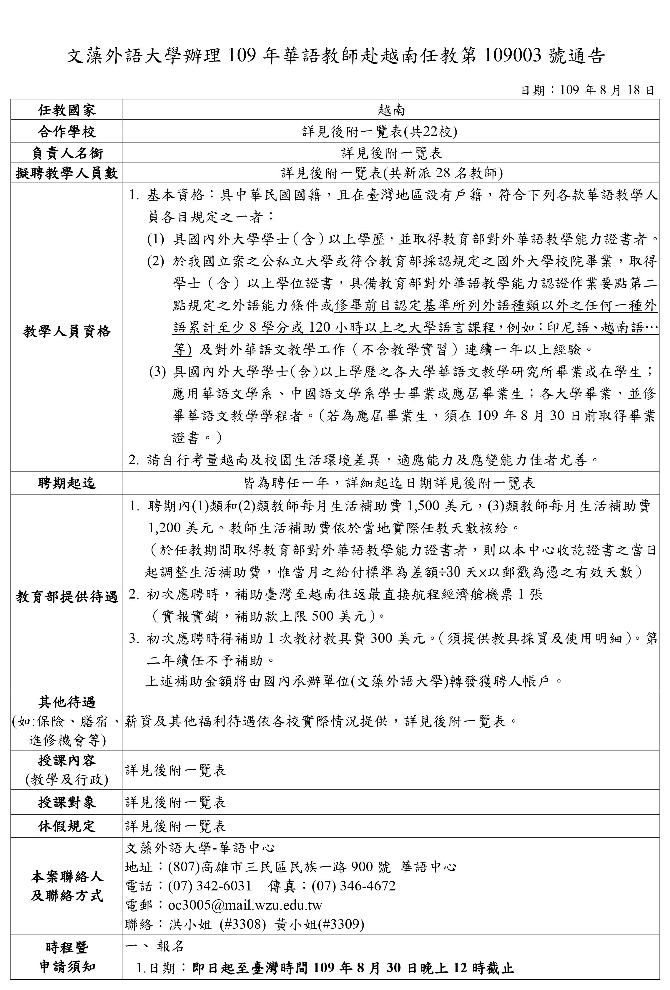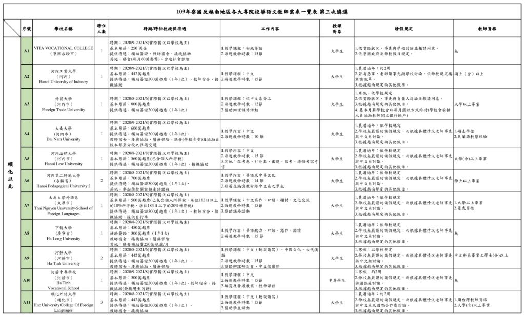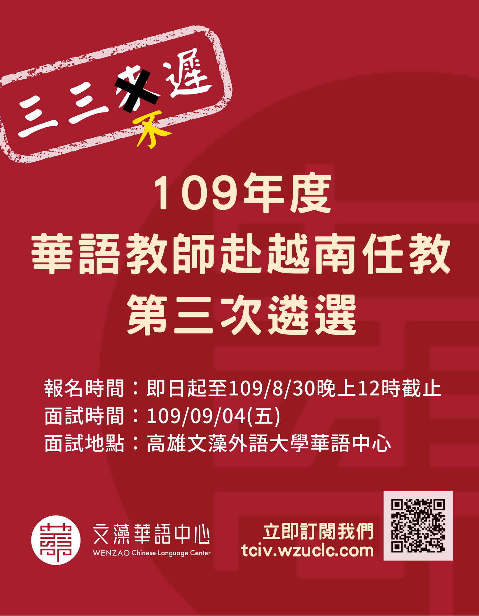 【文藻華語中心】109年華語教師赴越南任教第三次遴選