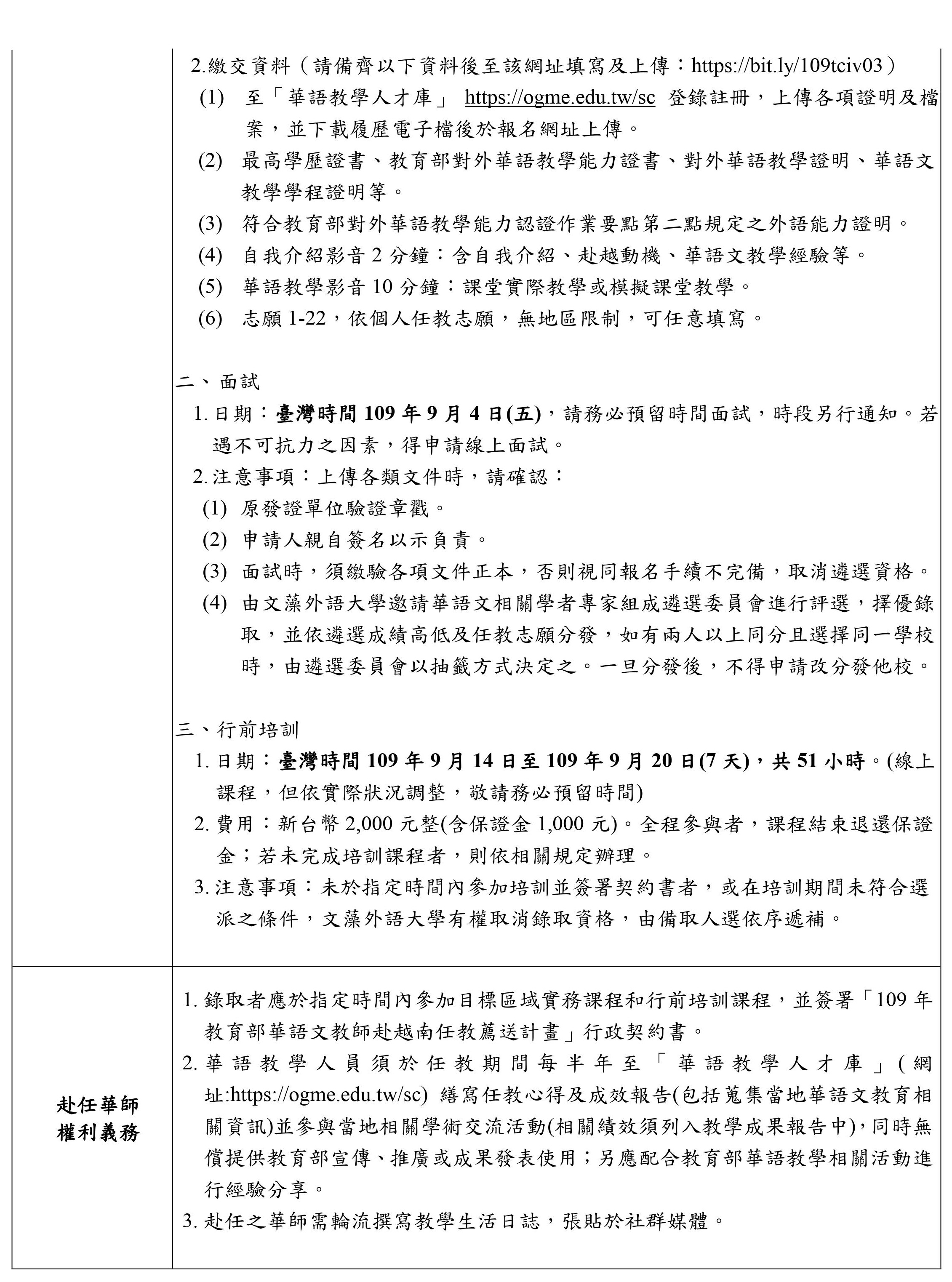 [109年教育部選送華語教師赴國外學校任教第109022A號通告(美國羅德島大學)]