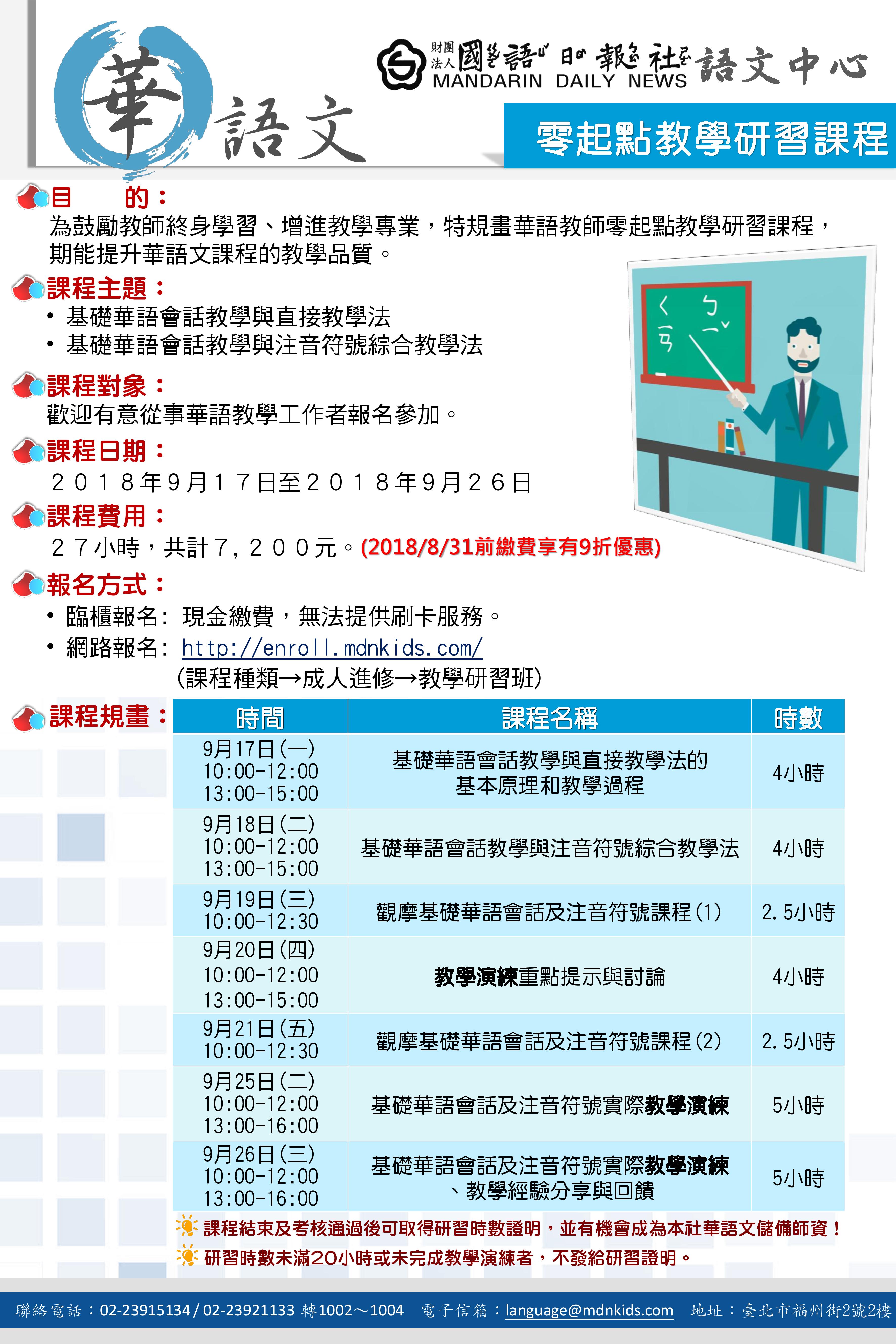 [國語日報] 2018年9月華語文零起點教學研習課程(9月17日至9月26日)招生中,歡迎踴躍報名參加!