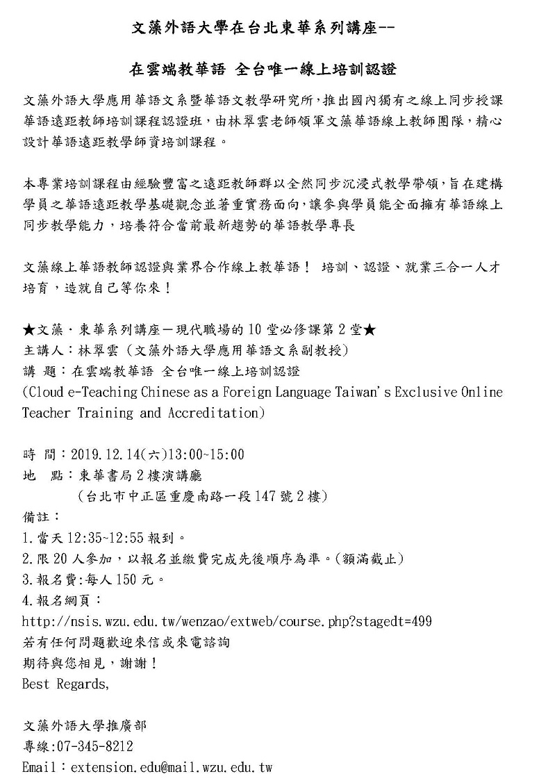 [TLI中華語文] 2020年二四班/週六班/暑密班 國際漢語教師認證課程招生中!