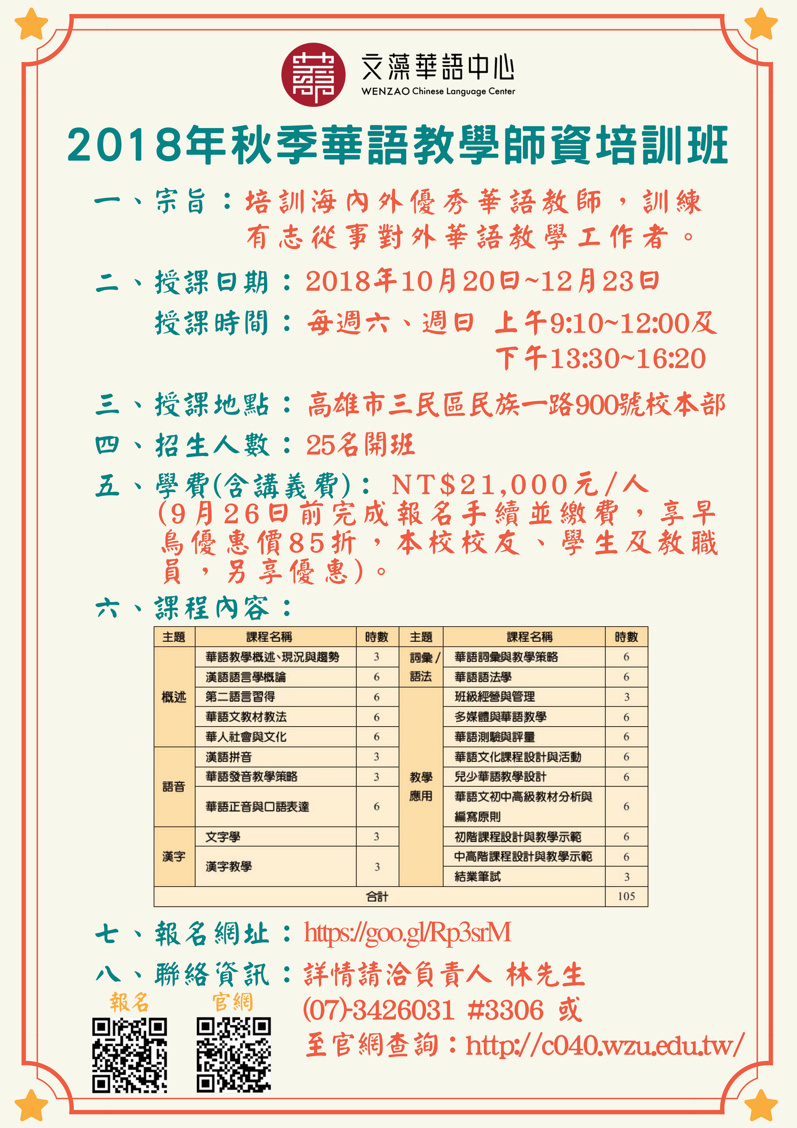[文藻華語中心] 2018秋季華語師資培訓班