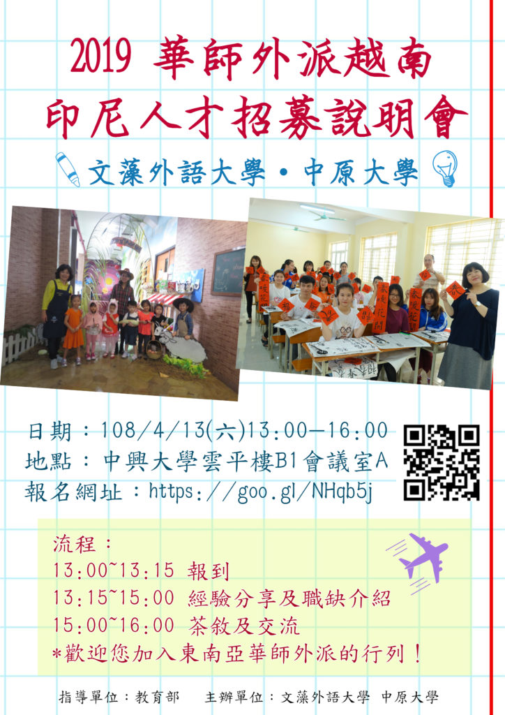 [文藻華語中心]2019年華語文教師赴東南亞任教中區說明會