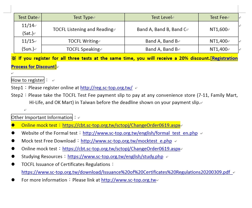2020年「華語文能力測驗」11月正式考試,10月5日至10月21日開放報名!
