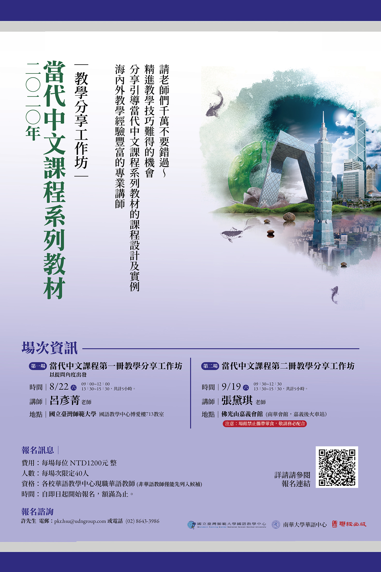 而這樣的教學運作,也希望能跟全台華語教師分享與討論互動,將逐步針對當代中文課程系列教材各冊舉辦教學分享工作坊,除了講師呈現課堂實際教學操作與分享,可讓老師們更了解當代中文課程系列教材,也希望促進臺灣各地華語教師的交流,持續提升教學的多元化,也有相關教學檔案跟老師們分享。