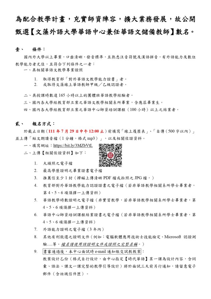 2. 工作經驗:有華語教學背景或專長者尤佳