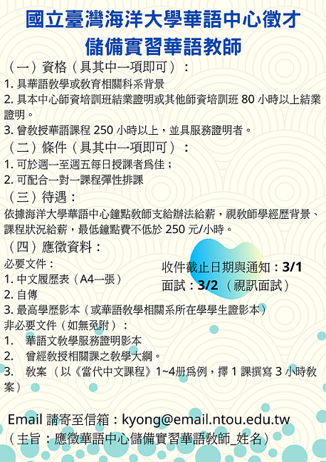 十、有關徵聘詳情請見本系網頁http://www.tcsl.ntnu.edu.tw/index.php?inter=news&ncid=9&id=280#page_title