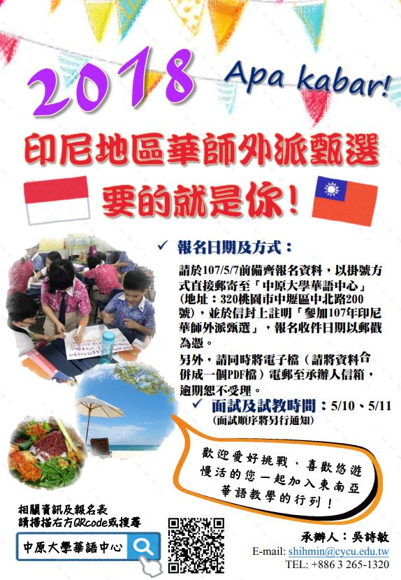 107年遴薦華語教師赴印尼學校任教通告