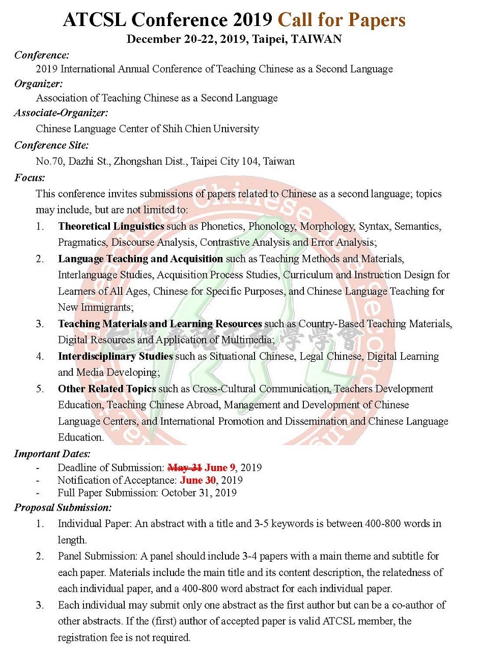 ⚠重要提醒:「2019年僑務委員會華語教學國際研討會」已報名額滿,且不開放現場報名,歡迎收視6月21日上午的現場直播。
