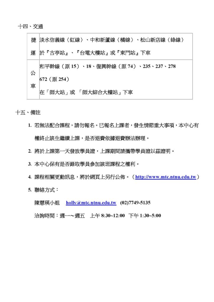 holly@mtc.ntnu.edu.tw(02)7734-5135 陳小姐