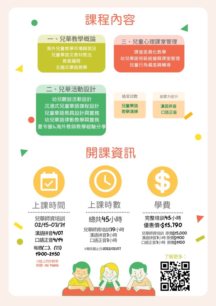 【(線上同步課程)2022年華語師資證照培訓班第40期(平日晚間班)】